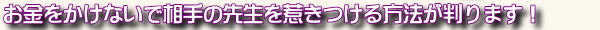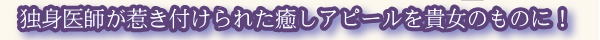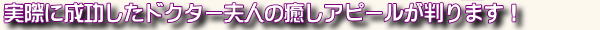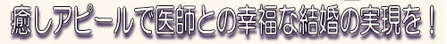 独身医師であれば関心を持たずにはいられない、癒しのアピールテクニックを貴女のものにして、悲願・念願であるドクター夫人の夢を叶えてください!