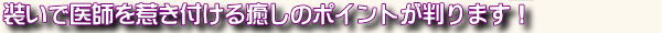 独身医師であれば関心を持たずにはいられない、癒しのアピールテクニックを貴女のものにして、悲願・念願であるドクター夫人の夢を叶えてください!